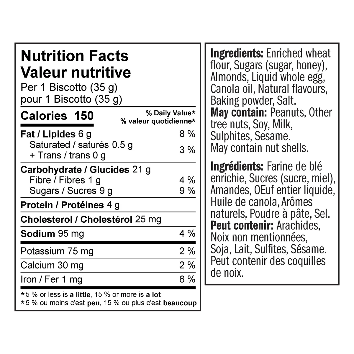 Almond Hazelnut Dark Chocolate Biscotti is filled with toasted almonds and hazelnuts, hand-dipped in rich dark chocolate. Made in Canada with premium ingredients and no trans fats or preservatives.