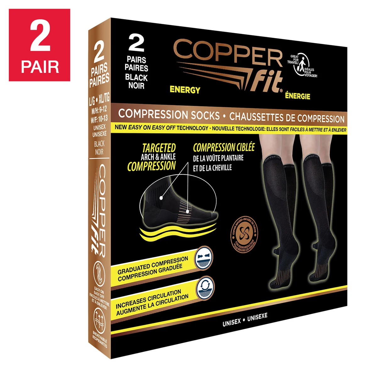 Relieve pain and swelling with theseCopper Fit Unisex Compression Socks. Featuring 15-20 mmHg graduated compression, cushioned footbed, and reinforced arch support. Easy-on design and anti-odor fabric for all-day comfort and improved circulation.