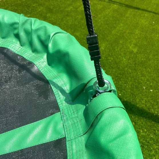 This large saucer tree swing features a spacious round platform, allowing multiple users to sit or play comfortably. The padded outer edge adds extra safety, while the adjustable ropes make installation simple on trees, swing sets, or other outdoor structures.