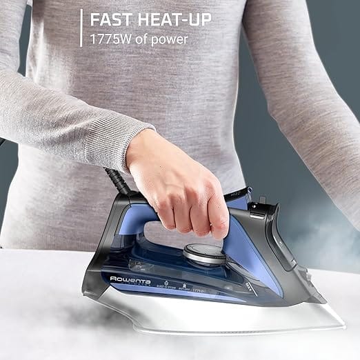The Rowenta Ultimate Steam Iron combines power and precision with 1775W and a 200 g/min steam boost to tackle tough wrinkles. Features include vertical steaming for hanging garments, a scratch-resistant stainless steel soleplate, and an ergonomic handle for comfort.