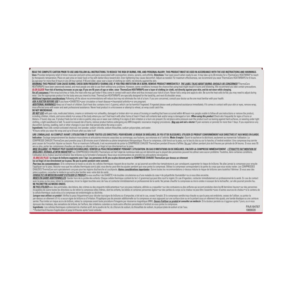 ThermaCare Advanced Back Pain Therapy HeatWraps are clinically proven to relieve pain and improve blood circulation, helping to speed up the body’s natural healing process. Convenient and portable, each wrap provides up to 8 hours of continuous therapeutic heat, with pain relief that continues for up to 8 additional hours even after removal.