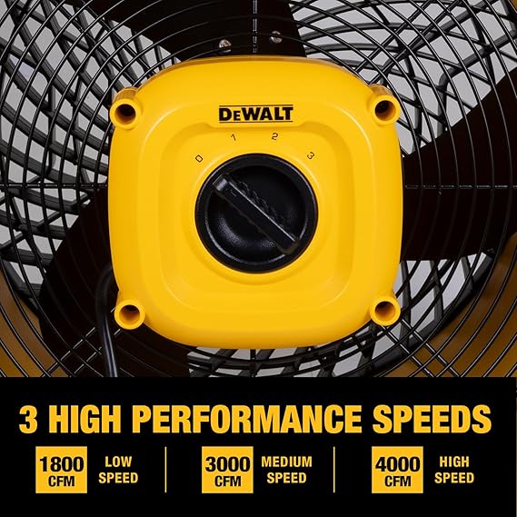 Designed with DEWALT’s signature durability, the DXF1616 features a 16-inch all-metal body and aluminum blades that produce strong, steady air movement. With three adjustable speed settings, you can easily control the airflow using the rotary switch, tailoring the breeze to your comfort or workspace needs.
