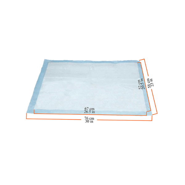 Each pad measures 76 cm × 58 cm (30 in. × 23 in.), offering generous coverage for maximum protection. The quilted top layer quickly locks in moisture, preventing leaks from spreading and reducing splash and tracking. A durable plastic liner adds an extra layer of protection, keeping floors, bedding, and furniture dry.