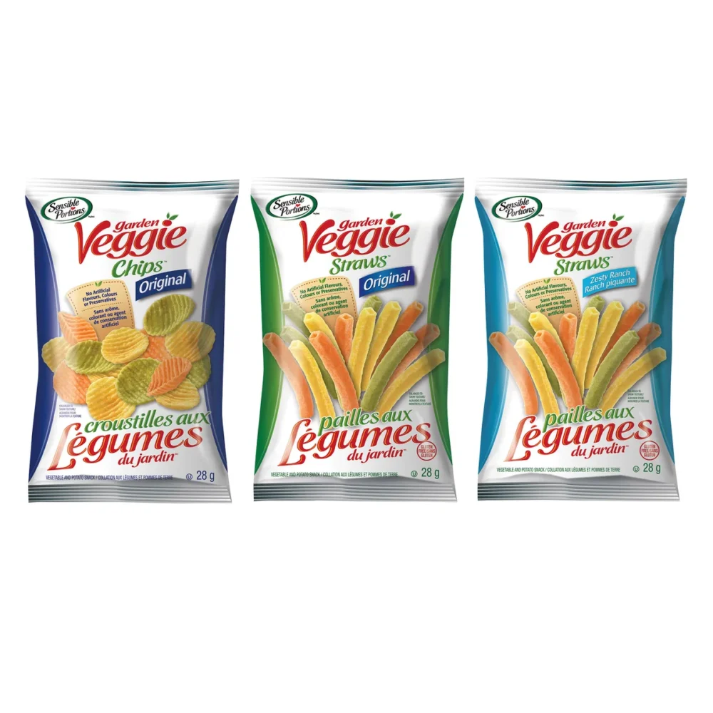 Enjoy light and crispy goodness with the Sensible Portions Veggie Snacks Variety Pack. Each bag offers a delicious mix of wholesome veggie straws and chips made with real vegetables. These snacks are gluten-free, non-GMO, and contain no artificial flavours or preservatives, making them a great option for school lunches, office breaks, or on-the-go snacking. Each pack includes 24 individual 28 g bags, perfect for sharing or portion control. With their satisfying crunch and garden-fresh taste, Sensible Portions Veggie Snacks are a family-favourite choice for healthy, guilt-free snacking across Canada.