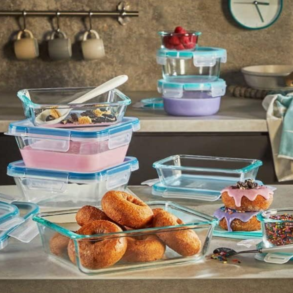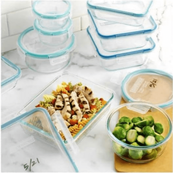 - A total of 18 pieces – multiple glass containers with coordinating write-and-erase lids.