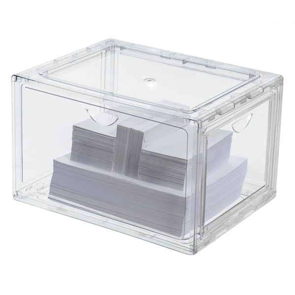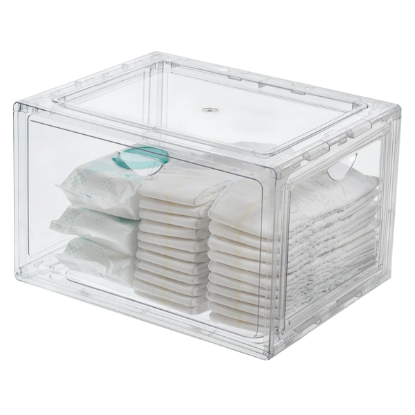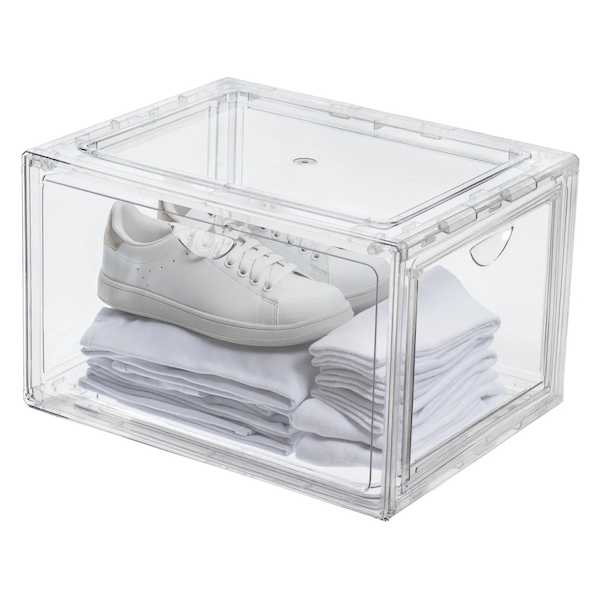 Each box features dual access doors—front and side—with a magnetic closure system for effortless and secure use. Whether you’re storing sneakers, heels, or other collectibles, these stackable organizers are designed to accommodate up to a US men’s size 14 shoe. Their versatile design makes them suitable for closets, entryways, or any space in need of organization.