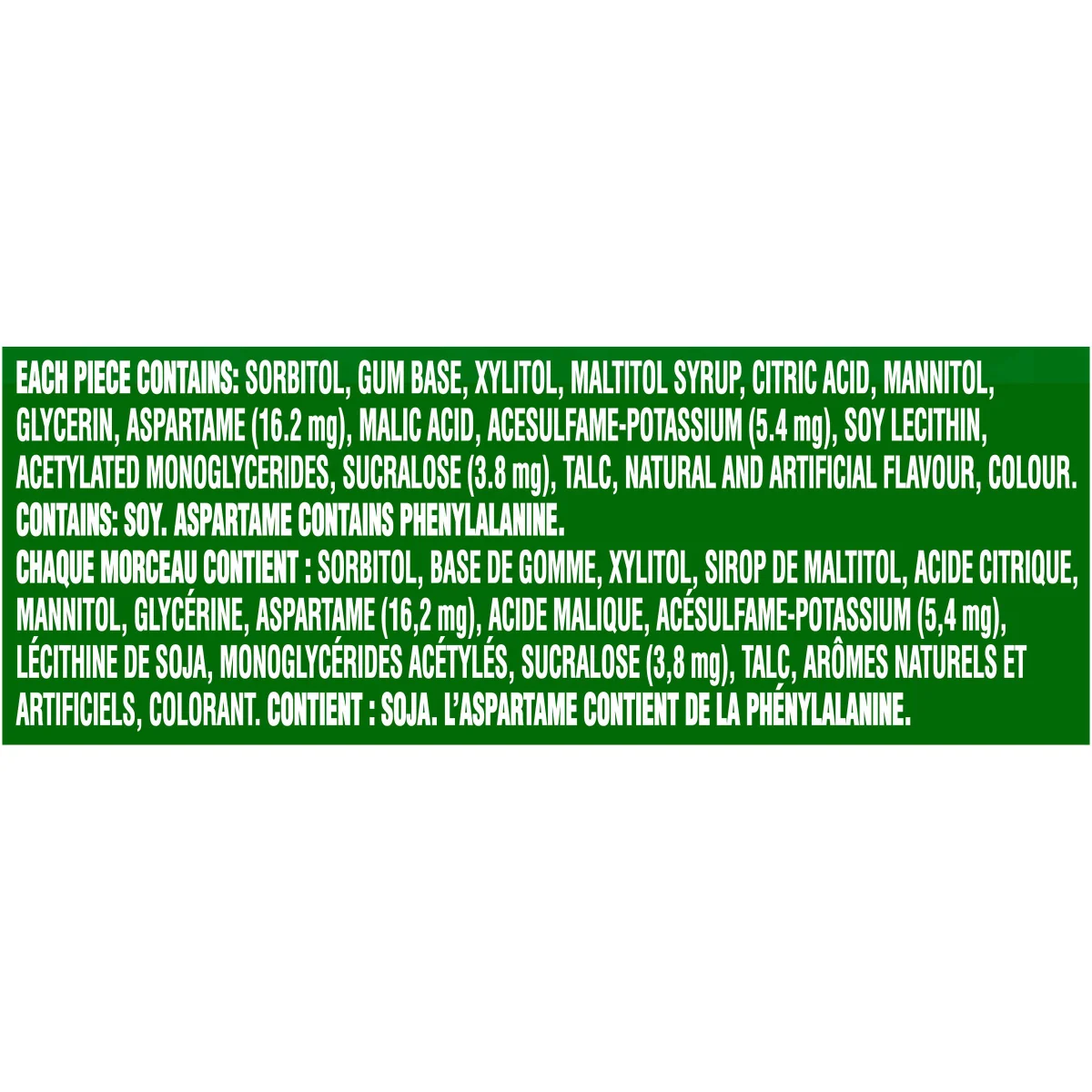 - Sugar free chewing gum