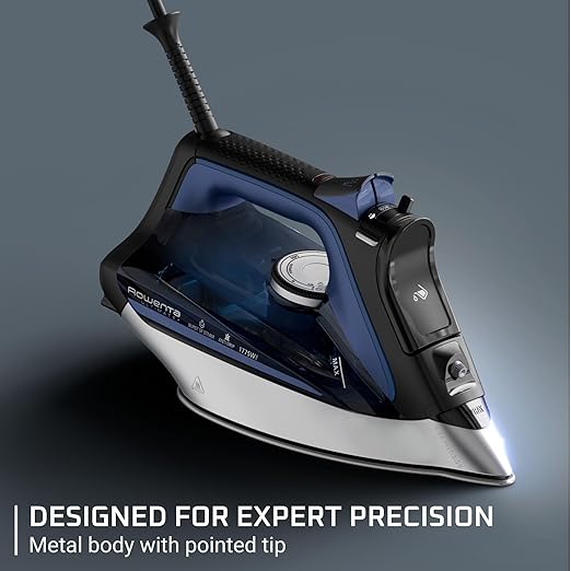 Achieve smooth, wrinkle-free clothing with the Ultimate Steam Iron Rowenta. Boasting 1,775W of power, 200 g/min steam boost, and 35 g/min continuous steam output, this iron glides effortlessly over fabrics. The vertical steam feature allows for steaming delicate and hanging garments, while the ergonomic handle ensures comfortable, fatigue-free ironing. Durable stainless-steel soleplate resists scratches, and the transparent water tank makes refills simple. With the Ultimate Steam Iron Rowenta, ironing becomes fast, efficient, and precise.